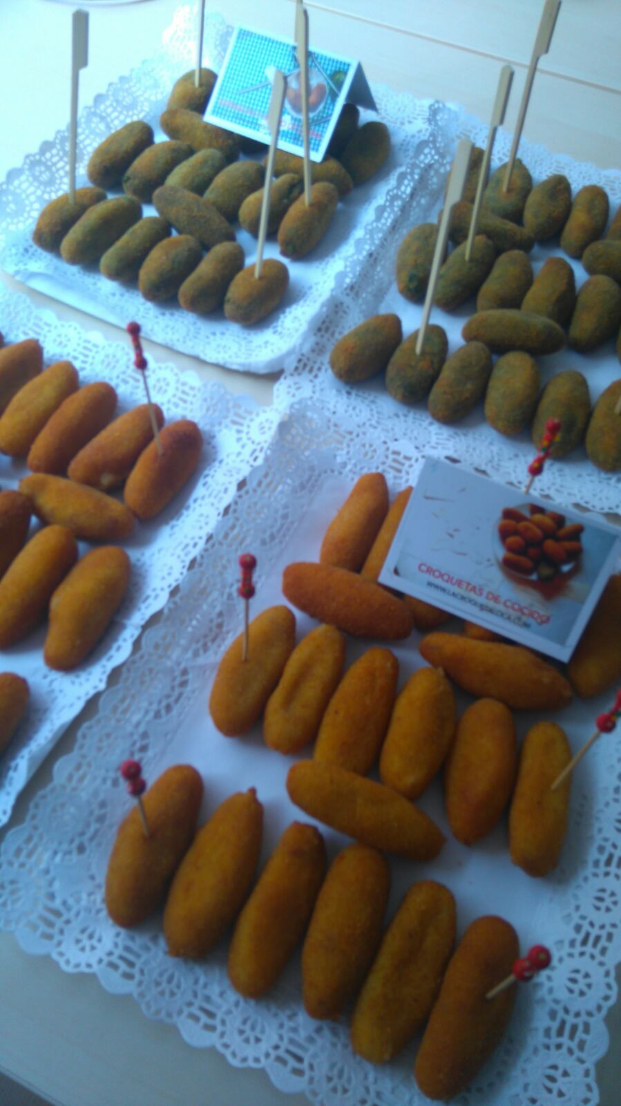 Las Croquetas de Conchi Gracias a Conchi por compartir estas imágenes. Croquetas de chistorra sobre patatines bravas Servidas como magdalenas Bandejas con croquetas Bola de croqueta Mini croqeutas Croquetas de queso y salsa brava Croquetas de bacalao Molde blanco Colores 2 Moldes de colores Related photos 1 Croquetas de Aceitunas 1 Canal Croqueta, fotos 1